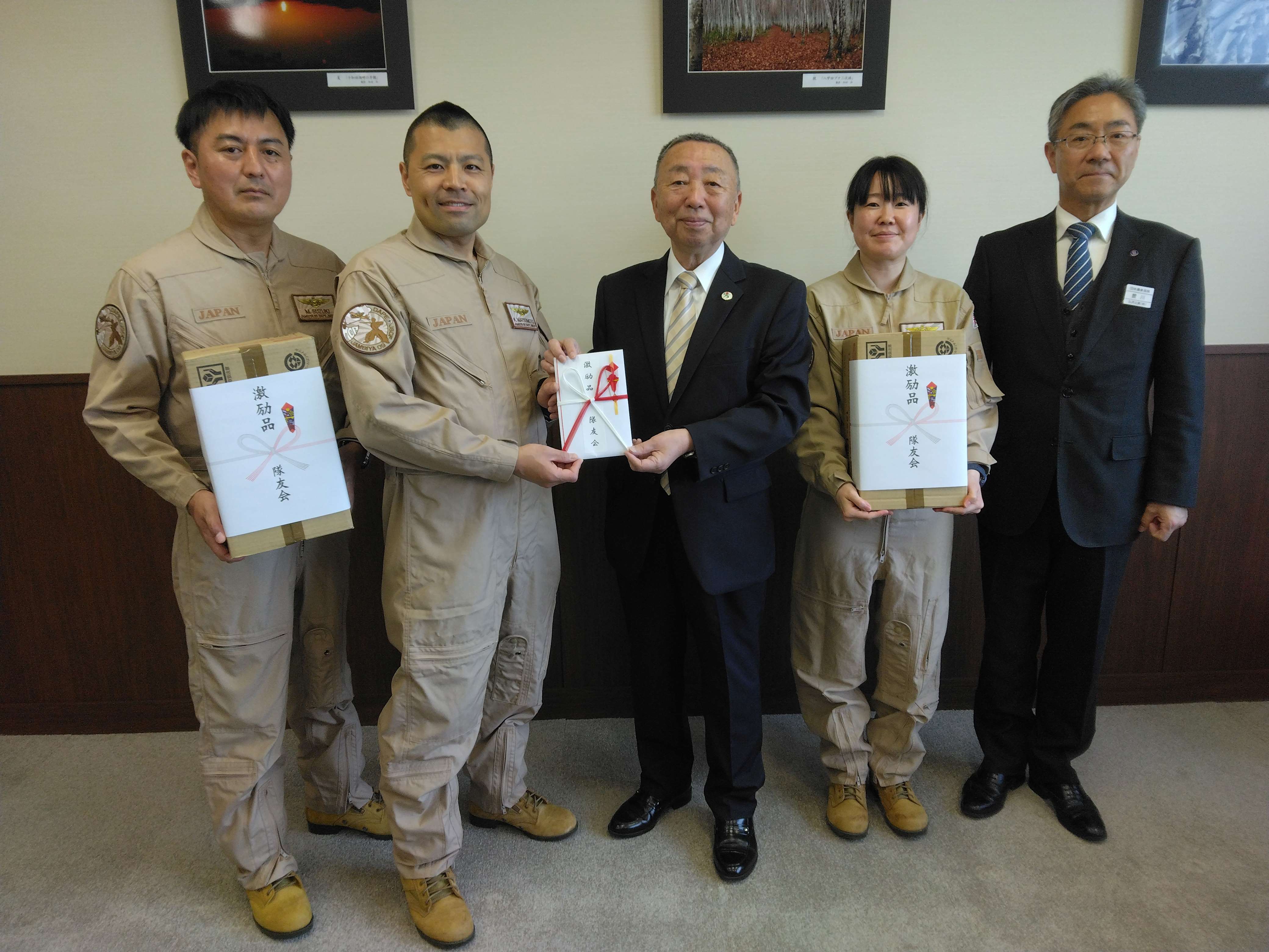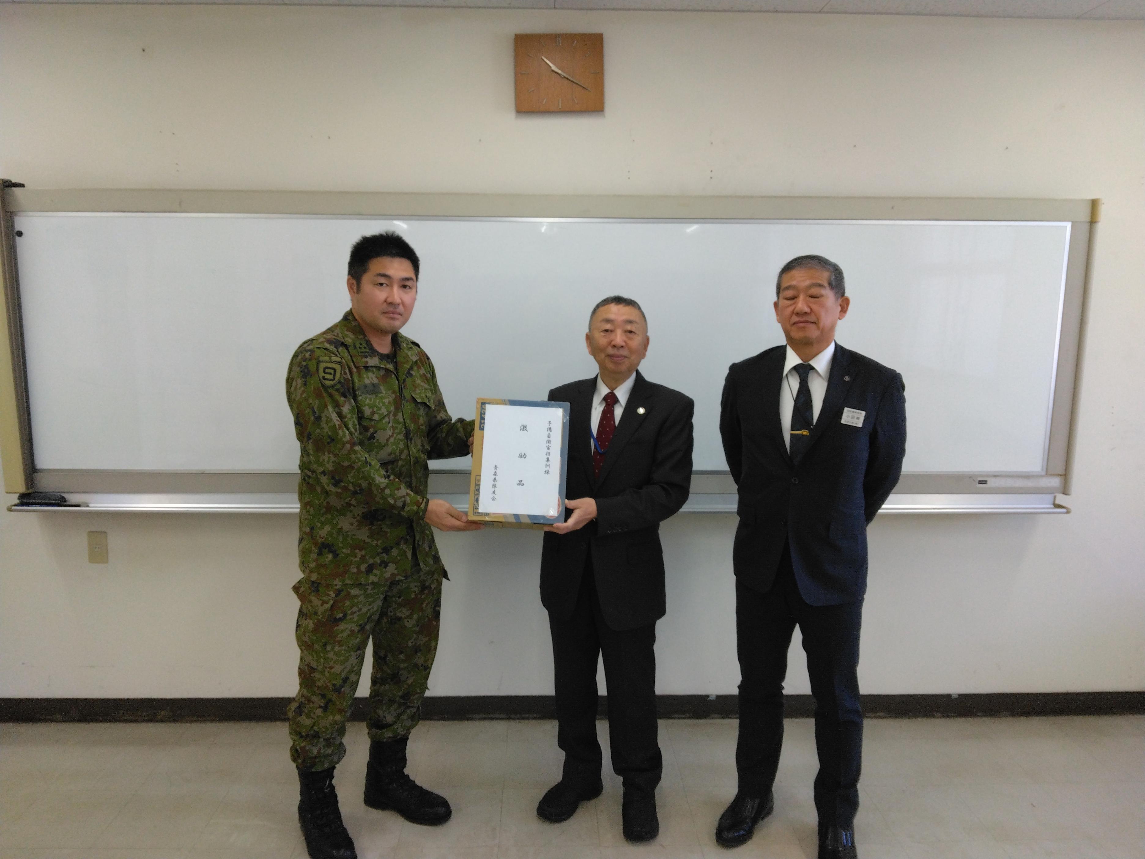 これに先立ち5月9日、松本司令に青森県隊友会三八地域小笠原治仁支部長が任務の完遂と無事の帰国を願い隊友会からの激励品を贈呈した。 (理事役 小清水吉弘)