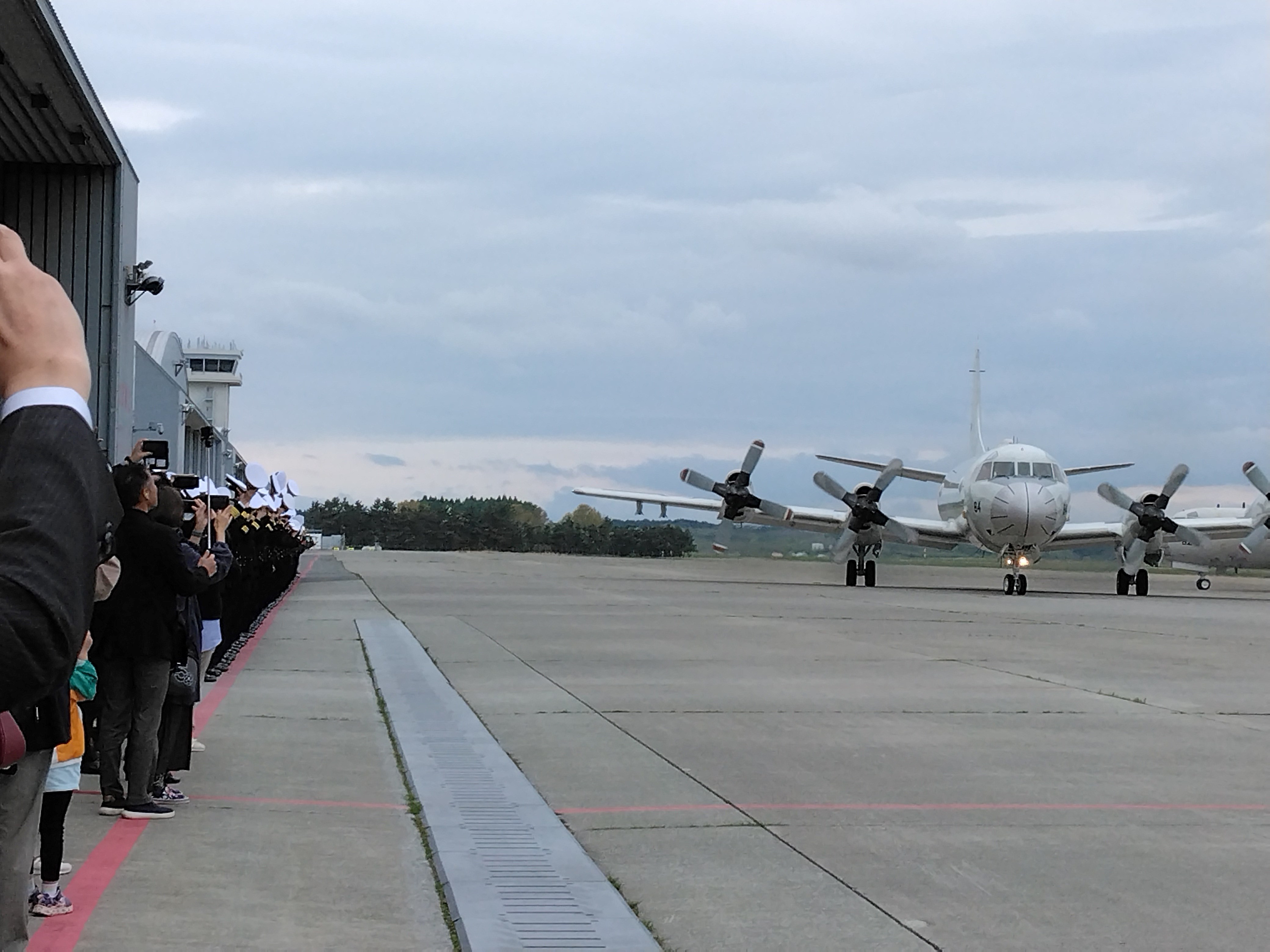 写真上:見送りを受けるP-3C