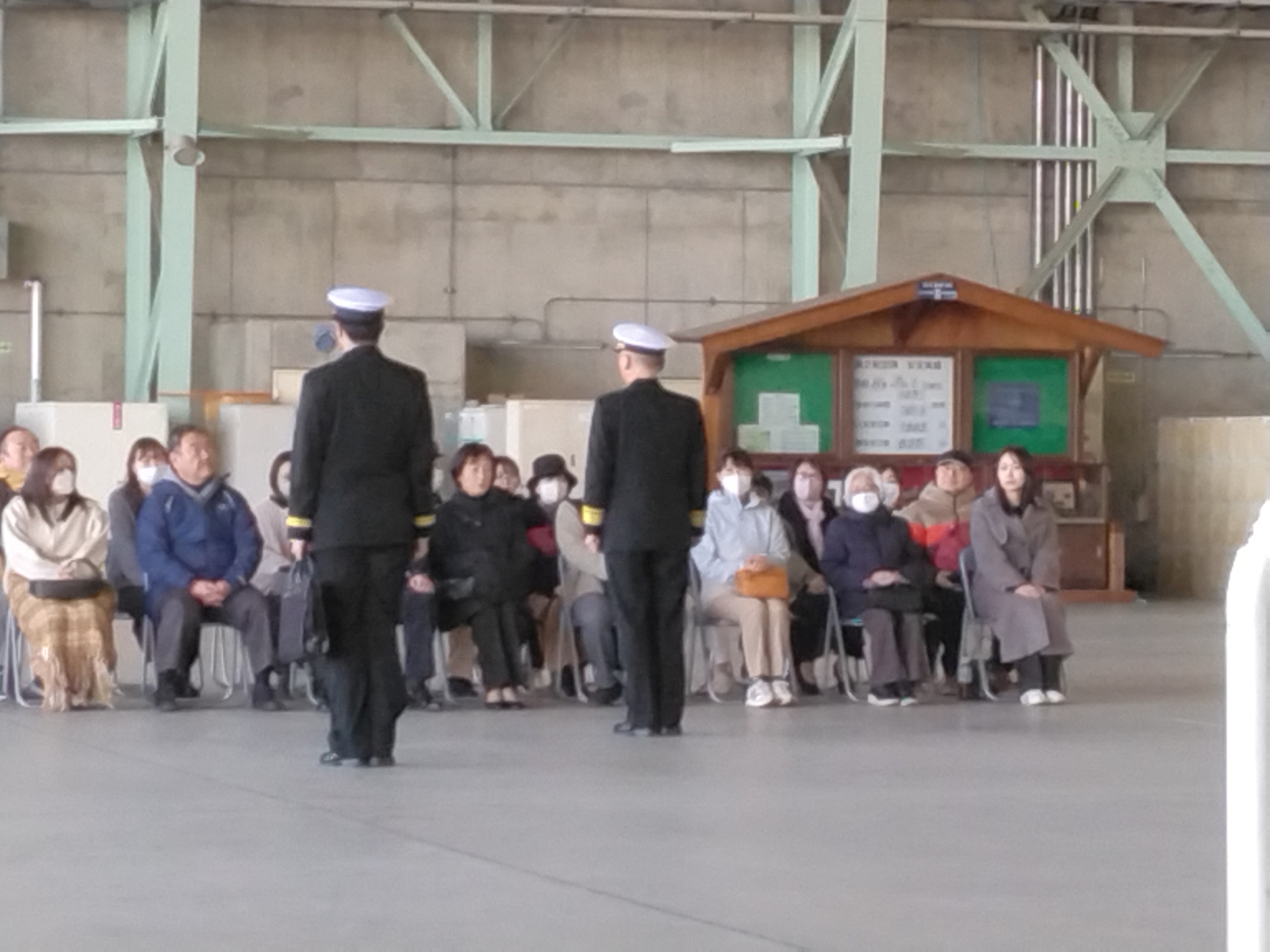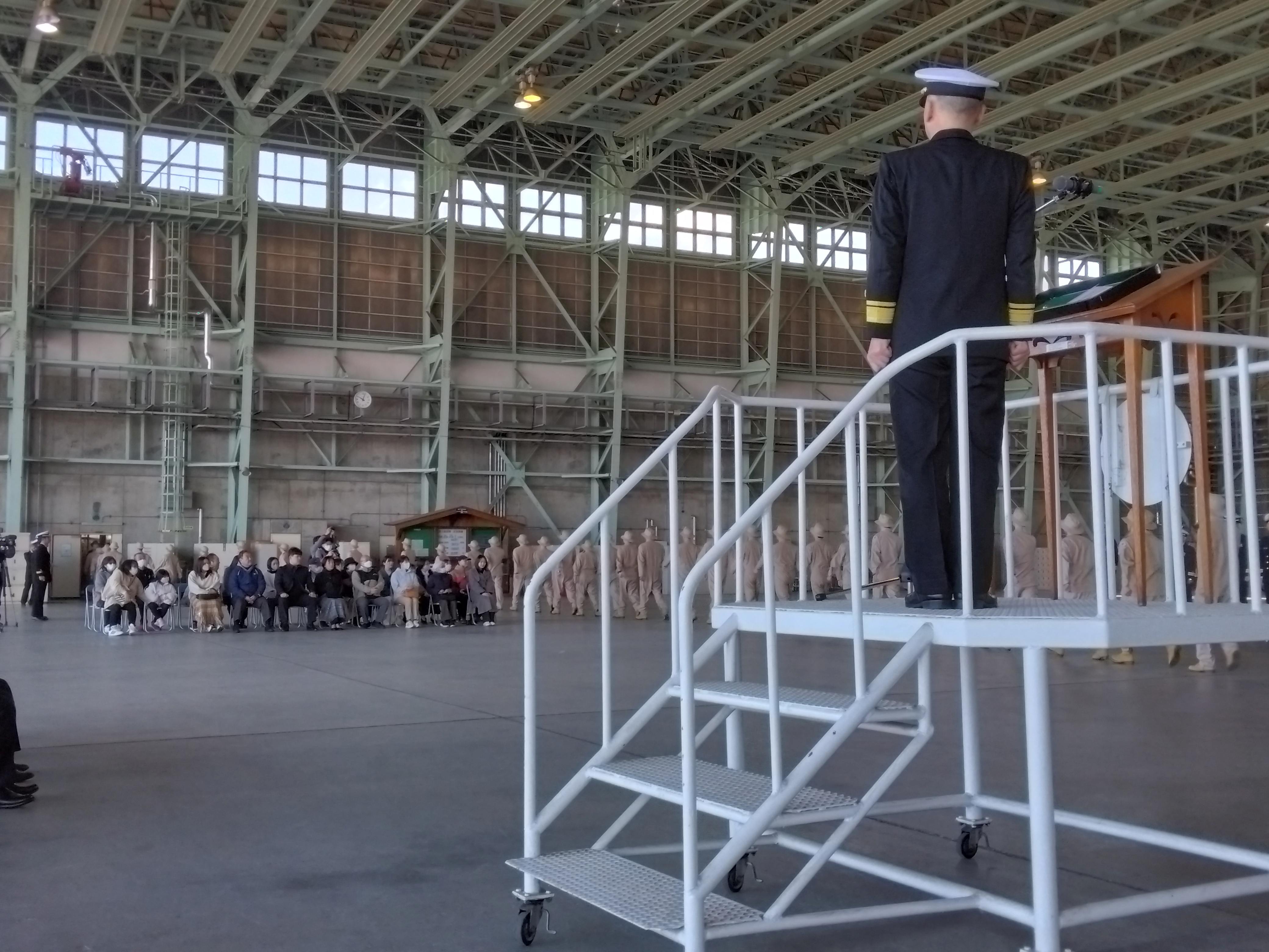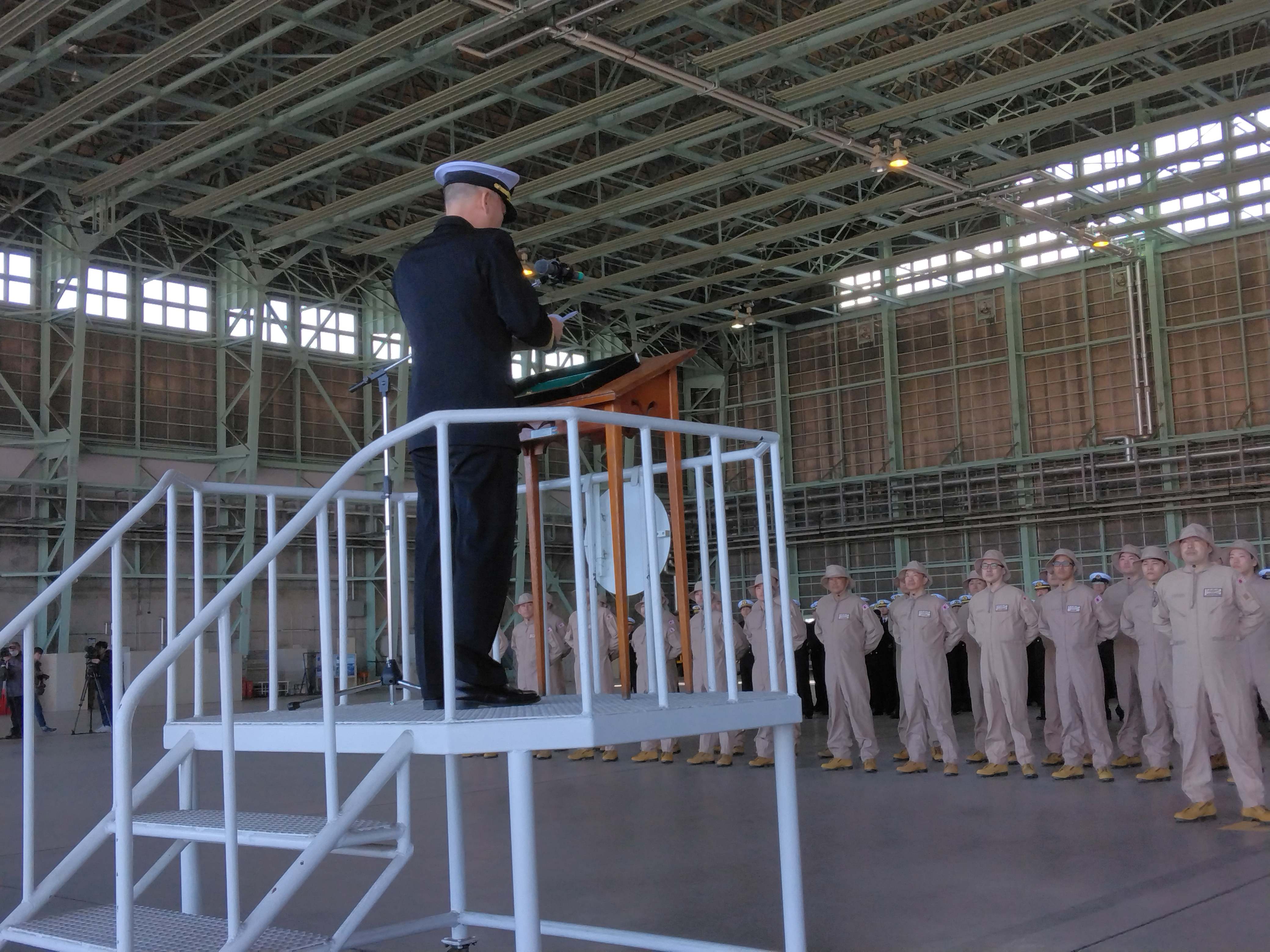 「第59次派遣海賊対処行動航空隊出国」 令和8年3月15日海自八戸航空基地から第2航空群(群司令 赤岩英明 海将補)を基幹として、ソマリア沖・アデン湾に派遣される第59次派遣海賊対処行動航空隊(司令 森島利顕 2等海佐)の出国行事が行われた。赤岩第2航空群司令が自衛艦隊司令官(大町克士 海将)の訓示を代読し激励した。その後、森島司令が第2航空群司令に出国報告を行い、任務に向けて士気を高めた。55名で編成される派遣要員は、基地隊員、家族及び青森県隊友会三八地域小笠原治仁支部長をはじめ自衛隊支援団体等約330名の見送りを受け八戸航空基地を出発し、16日成田空港から民間機で出国した。 同基地からの派遣は、令和7年10月に引き続く24回目で第57次から59次まで3回連続となった。派遣期間は約5か月間で、ジブチを拠点に上空からアデン湾の不審船や海賊の警戒監視及び中東地域の日本関係船舶の安全確保に向けた情報収集等に当たる。これに先立ち2月17日、森島司令に青森県隊友会堀内直樹会長が任務の完遂と無事の帰国を願い隊友会からの激励品を贈呈した。