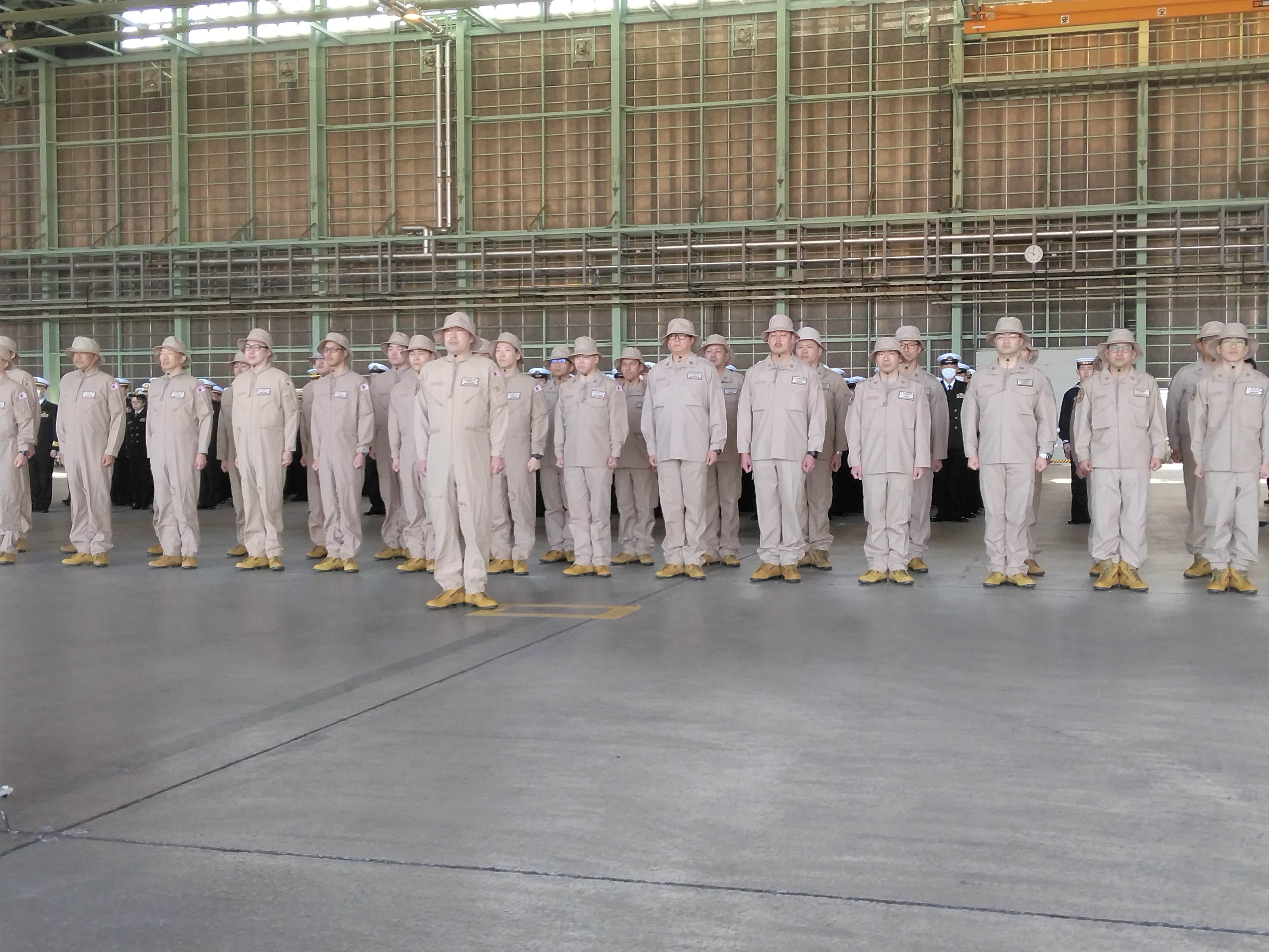 「第57次派遣海賊対処行動航空隊出国」 5月12日八戸航空基地から第2航空群(群司令 赤石英明 海将補)を基幹として、ソマリア沖・アデン湾に派遣される第57次派遣海賊対処行動航空隊(司令 松本光一 2等海佐)の出国行事が行われた。赤石第2航空群司令が「国際情勢は混迷の度合いをさらに増している。一丸となって任務に臨むことを期待する」旨のソマリア沖・アデン湾方面派遣海賊対処部隊指揮官である自衛艦隊司令官(大町克士 海将)の訓示を代読し激励した。松本司令が2航空群司令に出国報告を行い、任務に向けて士気を高めた。55名で編成される派遣要員は、基地隊員、家族及び青森県隊友会三八地域小笠原治仁支部長をはじめ自衛隊支援団体等約250名の見送りを受けた。当日、先遣隊としてP-3C哨戒機1機が隊員等に見送られて同基地を出発。残りの隊員は14日、青森空港から民間機でソマリアの隣国・ジブチ共和国に向けて出国した。 同基地からの派遣は令和6年7月以来22回目、派遣期間は約5か月間で、ジブチを拠点に上空からアデン湾の不審船や海賊の警戒監視及び中東地域の日本関係船舶の安全確保に向けた情報収集等に当たる。 これに先立ち5月9日、松本司令に青森県隊友会三八地域小笠原治仁支部長が任務の完遂と無事の帰国を願い隊友会からの激励品を贈呈した。